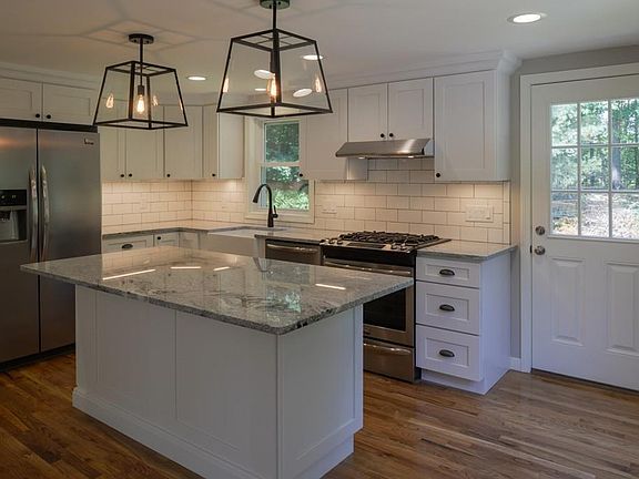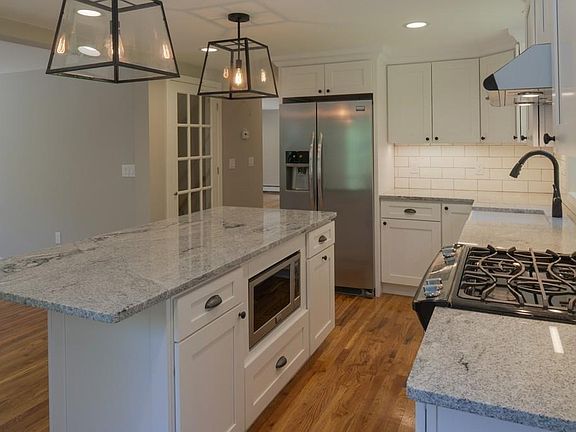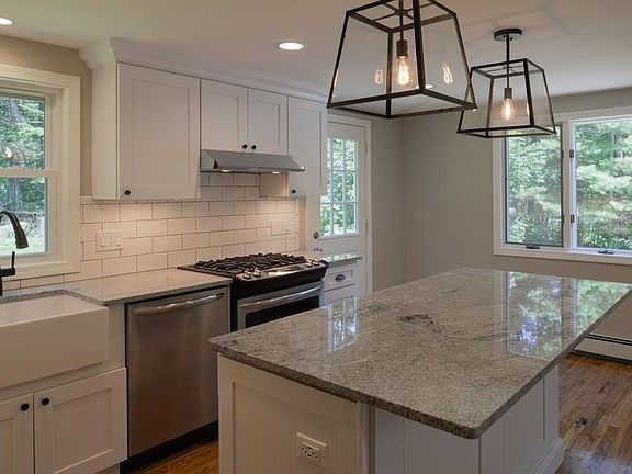 Perfectly situated on a quiet wooded lot set back from the road this impeccably renovated Gambrel is a must see. All new kitchen is both modern and inviting, and features a spacious center island with granite countertop, all new cabinetry, and stainless steel appliances. The kitchen flows easily into the living and dining rooms with the open concept floor plan on the first floor and also includes a half bath with laundry area. The second floor highlights a master suite complete with tiled walk in shower, double vanity with marble top and walk in closet. Two additional bedrooms and full bath complete the second floor. The basement has been fully converted to living space and features a mud room with built in bench and coat hooks for handy storage. Newly installed heating system, windows, siding and doors make this home energy efficient.