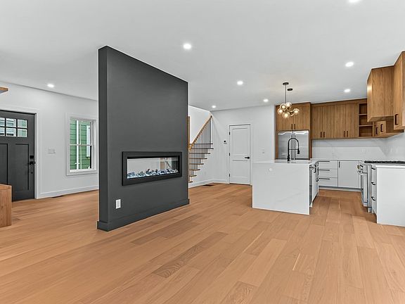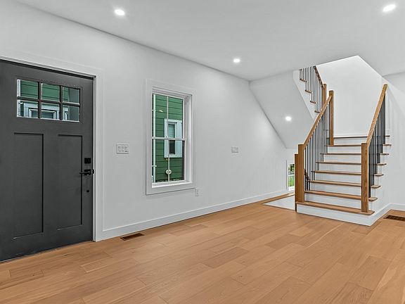 This 4 bed, 3.5 bath home features wide-plank hardwood floors, soaring ceilings, and custom finishes throughout. The open main level offers a chef's kitchen with waterfall quartz countertops and premium appliances, a spacious living area with an electric fireplace, and a built-in storage nook by the entry. Upstairs, the top-floor primary suite impresses with a walk-in closet and spa-like bath with soaking tub, tiled shower, and double vanity. Two additional bedrooms, a full bath, and laundry with custom storage complete the second level. The finished lower level offers a guest suite or home office with a full bath and wet bar. Enjoy a private fenced backyard, exclusive driveway access, and close proximity to 1-93 and Assembly Row where there are many shops & restaurants. A perfect blend of style, comfort, and convenience.