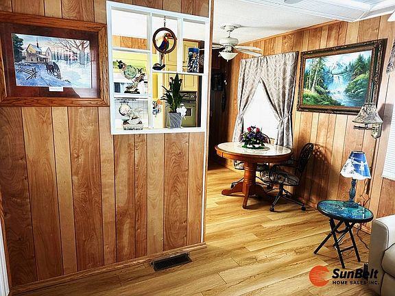 Are you looking for a Low Lot Rent, 55+ Community with the option to buy a Share? This is the home for you! This cute 1-bedroom home is spacious and private with no rear neighbors. It has had lots of updates done within the last 5 years. The subfloor has been replaced and new luxury vinyl plank flooring installed throughout the home (except for the bedroom) 6 months ago, the central heat/air is about 5 years old, the bathroom has been remodeled (about 1 year ago) including a new toilet, sink and faucet, shower and all new plumbing, the landscape in the front has been upgraded this year including weed barrier and rock. You can enjoy the great weather in the attached Florida room. The home is also located directly across from the clubhouse and pool. Call today for your personal or facetime tour. This one is a must see!