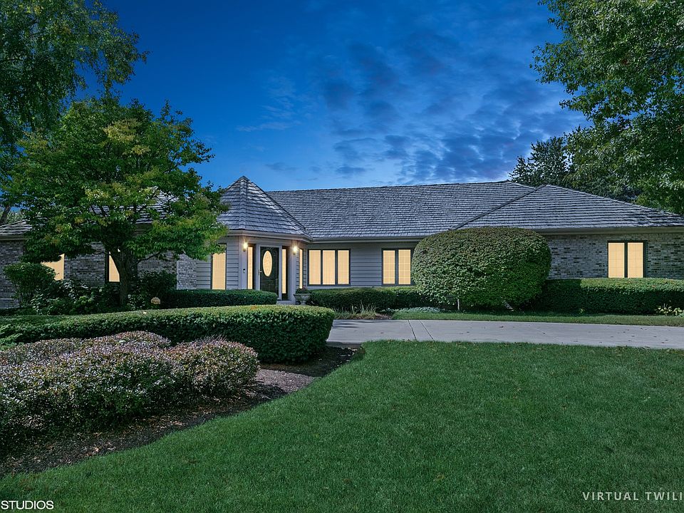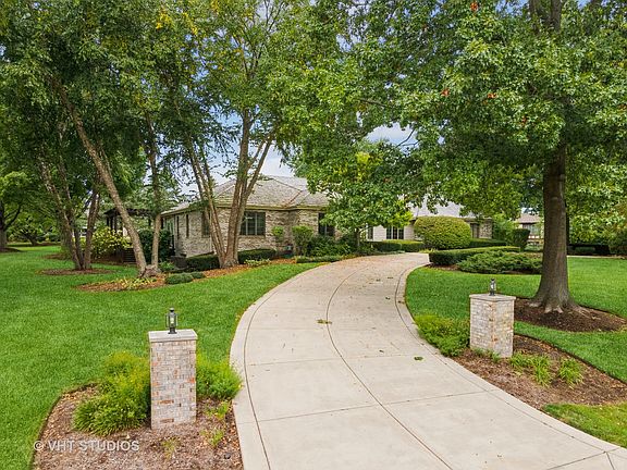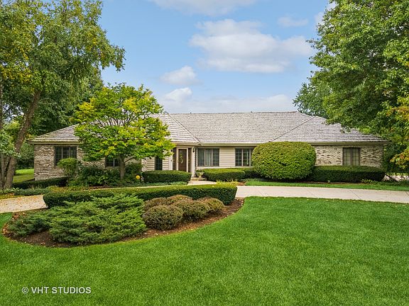 MULTIPLE OFFERS - Please submit your client's highest and best no later than Saturday, 11/11 at 5:00 pm. Custom Lambie built brick and cedar ranch on an acre lot in prestigious Williamsburg Green adjacent to Elgin Country Club! Large family room with vaulted ceiling, floor to ceiling all masonry brick fireplace with gas starter, half Palladian windows. Formal living and dining rooms with 12' ceilings, eat in kitchen with breakfast bar and eating area with built in storage and French doors to Sun Room. Kitchen has oak cabinetry with and pantry. Primary suite with French doors to Sun Room with two skylights, bath with whirlpool tub, separate shower and two vanities. Daylight basement with deep pour foundation, large Rec Room (pool table does not stay), 2nd Kitchen, 4th Bedroom, full bath, large storage area and exterior access. Two Lennox energy efficient GFA furnaces and central air units allow for zoned heating and cooling. Anderson casement windows, underground sprinkler system, drywalled and insulated three car garage with gas line for heater. 42x20 tiered Trex deck with built in seating and pergola, concrete circular driveway and cedar shake roof. Sought after ranch in desirable subdivision with no through traffic. Burlington School District 301, easy access to Randall Rd corridor, Big Timber Metra station and I-90 interchange.