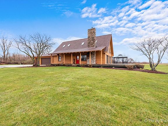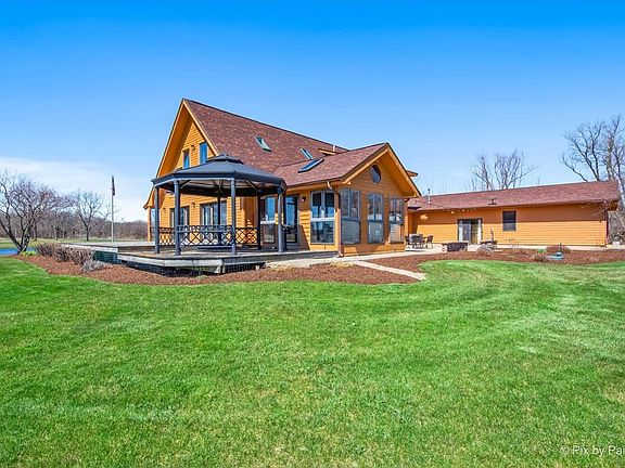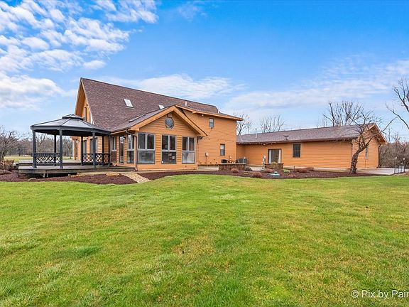 Welcome to this extraordinary property nestled in the countryside yet conveniently close to all the amenities the Fox Valley has to offer. Situated on 10.67 acres and set back from the road for added privacy, this home boasts stunning views of nature from every angle, including the surrounding deck and gardens. Featuring 4 bedrooms, 3.5 baths, a 2.5 car garage, workshop, and separate outbuilding, this home has everything you need and more. Built with 2 x 6 construction and halved logs, it exudes a natural charm that perfectly complements its idyllic setting. The main level embraces an open living concept, showcasing an updated kitchen with stainless steel appliances, a professional range, and polished concrete countertops. The spacious living room, complete with floor-to-ceiling windows and a cathedral ceiling, is ideal for entertaining guests or simply enjoying quiet evenings by the wood stove. Adjacent to the kitchen, the dining room offers ample space for gatherings, while the three-season room provides a serene retreat to connect with nature. Equipped with a natural gas grill and vent, the three-season room allows for year-round grilling, ensuring endless enjoyment regardless of the weather. Two of the four bedrooms and one full bath are conveniently located on the main level, along with laundry facilities. Upstairs, the expansive master bedroom boasts an ensuite bath with heated floor and skylights, perfect for stargazing from the comfort of your bed. The full basement, partially finished for additional living space, features a half bath with heated floor, wood-burning stove, built-in shelving, wet bar, and pool table-a versatile area for recreation and relaxation. Accessible from both the main level and basement, the garage provides convenient entry to the home. The attached in-law suite/guest house features radiant heat, the fourth bedroom, third full bath, living room, and kitchen, providing endless possibilities for use. Outside, a stocked aerated pond with a depth of 20 feet awaits, inviting leisurely afternoons of fishing and relaxation. Recent upgrades include a new roof and skylights installed in 2023, ensuring peace of mind for years to come. With dual 50-gallon water heaters ensuring ample hot water supply, this home is not just a property; it's a lifestyle-a sanctuary where comfort, luxury, and natural beauty converge. Don't miss your chance to experience it firsthand. Schedule your viewing today.
