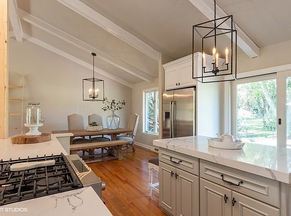 This completely remodeled & fabulous designer home located in the highly desirable 204 school district is an entertainer's dream! All the big ticket items have been done for you and it shows like a model! New Roof, A/C, exterior paint, water heater. Inside you'll find vaulted ceilings, an abundance of windows to let in natural light, a wide open floor plan, and hardwood floors throughout. Spacious kitchen features custom built cabinets, SS appliances, and quartz countertops. Tastefully updated bathrooms. Cozy family room with wood burning fireplace. Finished bonus room currently configured with a studio & full bathroom (access thru garage). Take your entertaining outdoors onto your brick patio overlooking lush landscaping & private views. Just move in & enjoy!