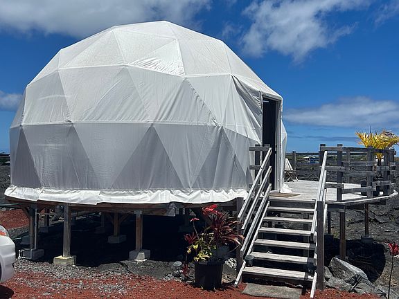 15,000 sq ft of Paradise! A unique combination of a Geodesic Dome, 40 foot Container and a wooden cabin structure creating the most fantastic living spaces at eclectic Kalapana Vacation Lots. Built upon 2 adjoining 7,500 sq ft lots 3-1-2-12-127 and 128.