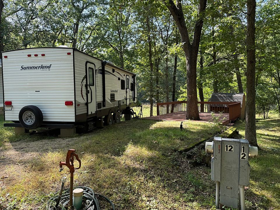 Don't miss this stunning, shaded pie-shaped lot tucked into a cul-de-sac in the heart of Woodhaven Lakes! Just a short stroll to the General Store, Laundromat, Restaurant, Pool 1, Rec Plex, and more-this location offers convenience. The lot backs to common ground. Close to Black Oak Lake. Included is a well-maintained 2016 Summerland by Springdale SM2820 Travel Trailer (29 ft), loaded with features: One slide-out for extra living space, Sleeps up to 5-6, equipped with roof A/C and floor-ducted heat. All appliances included. There is an electric lift and hitch, battery and 2 small LP tanks. Awning for outdoor shade. Large 10x12 deck for entertaining as well. There are 2 sheds for storage needs and a fire pit with firewood. This sewered lot is the perfect getaway, whether you're looking to relax, entertain, or explore everything Woodhaven has to offer. Call today for a showing! Please note that Woodhaven Lakes is a gated recreational community and cannot be used as a primary residence or homestead. You must be accompanied by a broker to view any properties, YOU CANNOT ACCESS THE CAMPGROUND WITHOUT A PASS. The property owner pays the association fees.