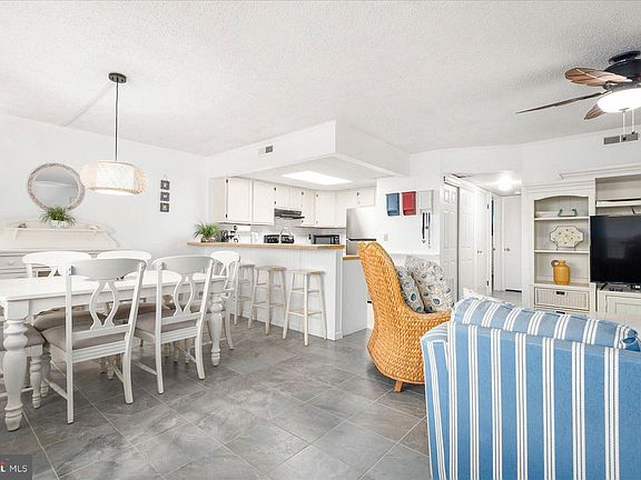This exquisite 2-bedroom, 2-bathroom unit in the Sea Witch building offers a unique opportunity for a vacation home as well as an investment opportunity with a blend of comfort and potential returns. Spanning 966 square feet, this thoughtfully designed flat features an open floor plan that seamlessly integrates the kitchen, dining, and living areas, creating an inviting atmosphere perfect for entertaining or relaxation. The kitchen is equipped with stainless steel appliances, including a built-in range, microwave, and dishwasher, complemented by an island that enhances functionality and style. The eat-in kitchen and breakfast area provide additional dining options, while the family room off the kitchen ensures a cozy gathering space. Natural light floods the unit through well-placed windows, enhancing the spacious feel. The primary bedroom offers an ensuite bath for convenience, while the second bedroom provides ample space for additional family members or guests. The unit also includes front-loading washer and dryer hookups, adding to the ease of living. Investors will appreciate the low association fees that cover essential services such as cable TV, common area maintenance, and lawn upkeep, ensuring minimal management hassle. Located just 500 feet from the Atlantic Ocean, this property offers potential for rental income, especially during peak seasons, capitalizing on the area's desirability. With assigned parking for two vehicles and a well-maintained exterior, this property stands as a solid investment in a sought-after location, promising both immediate enjoyment and long-term value.