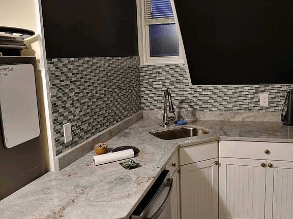 Updated kitchen with granite countertops, stainless steel appliances, and modern cabinetry