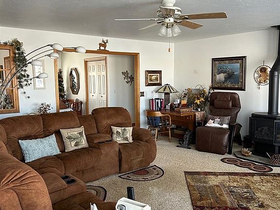 Seeking tranquility and space? Look no further. This Impressive country home nestled on 3 acres offers the perfect escape for you and yours. Embrace nature, breathe in fresh air, and enjoy the serenity of your own private oasis. Very quiet rural area halfway between Cody and Powell. Spacious one level home with 5 bedrooms and 4 baths. Extremely well maintained with loads of newer upgrades including windows, roof, appliances, and shop, Not in a subdivision ie. no covenants or HOA. Mature landscaping with lots of trees (windbreak on west side), and auto sprinkler system, Entire property is nicely fenced so can easily be horse property. Your feathered friends will enjoy the comfortable and safe chicken coop and you'll enjoy farm fresh eggs. Large composite back deck with idyllic views of surrounding farms./ranches. Large detached shop in addition to the semi-attached two car garage. Both are heated! Spacious living room with a view and a cozy gas fireplace. Big gourmet kitchen with new appliances. Very large dining room with easy access to kitchen. Good security system.