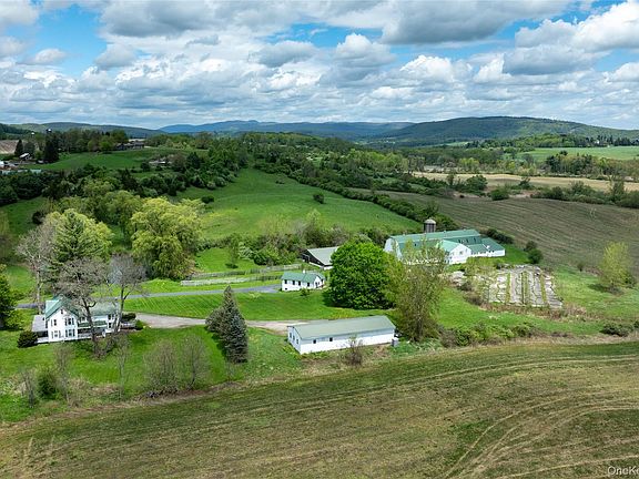 residential properties, a large, historic dairy barn, and leased farm fields, offering a unique blend of agricultural productivity and residential investment potential. The original farmhouse looks out over the pond and is framed by large mature trees. Multiple elevated build sites throughout the property provide sweeping, long-range bucolic valley views, perfect for future development or a private estate. Gently rolling pastures, open meadows, and mature trees define the landscape, creating a tranquil rural setting just minutes from village amenities and Metro-North access.