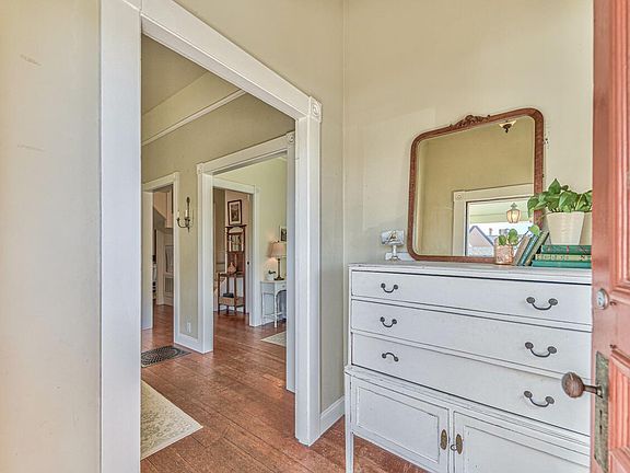 This storybook Victorian farm house features soaring ceilings, large windows, wainscoting and rustic wood floors, and many updates and improvements! Remodeled 2006-2007, including roof, walls, electrical and plumbing. In 2017, foundation and ducting were replaced, and new driveway, patios and walkways were poured. Exterior painted in 2021. And more! Welcoming entry. Sun-filled living room with bay window seating. Stylish kitchen features a Wedgewood gas range with ovens and also a newer oven for convenience, large porcelain sink, tile backsplash, walk-in pantry, eat-in area and opens to separate dining room. Half-bath on main floor. First floor primary bedroom with full bath featuring clawfoot tub. Three more bedrooms upstairs with full bath. Laundry room off kitchen leads to the charming, fenced backyard with privacy landscaping and concrete patio perfect for outdoor living. Raised veggie beds, lemon tree and storage shed. Spacious 2-car garage. Short stroll to the community park in the middle of this quaint community!