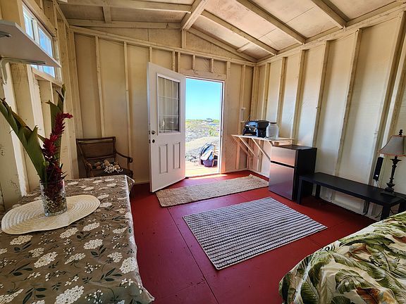 Both cabins have sweet front lanais from which you can see the ocean horizon and sunrises. Soak up the sunshine in sunny Kalapana!