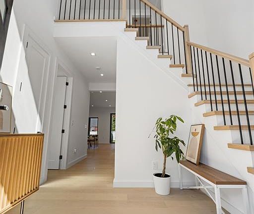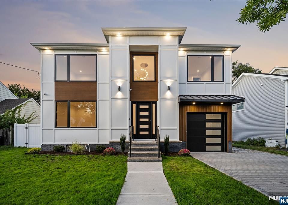 Experience the perfect blend of modern elegance and thoughtful design in this brand-new construction, built on an existing foundation. This home offers 5 beds, 5.5 baths, and a 1-car garage, highlighted by 7.5" white oak floors, a 2-story entry foyer with 9' ceilings, and modern rod iron staircase. The first floor features an open dining and living area with electric fireplace and custom TV wall, a bedroom with en suite bath, powder room, and customized closets. The chef's kitchen is a true centerpiece with quartz countertops and backsplash, island with microwave drawer, and premium Fisher & Paykel + GE Cafe appliances. Upstairs, enjoy 4 beds and 3 baths, including a luxurious primary suite with spa-inspired bath featuring a free-standing tub and custom walk-in closet. A convenient laundry room with washer, dryer, and sink completes the second level. The finished basement offers a spacious family room and full bath with frameless glass shower. Bathrooms throughout include porcelain tile, frameless glass doors, and Kohler fixtures. Exterior highlights include a paver driveway with Belgian block edging, stepping stone walkway, fenced yard, multi-zone sprinkler system, and high-end entry door with accent lighting. Added comforts include a 75-gallon AO Smith water heater, 2-zone heating/cooling with smart thermostats, and surveillance cameras with TV monitor. Located in the heart of Fair Lawn, this home is the definition of modern luxury living!