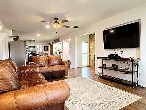 Stylish and spacious! This stunning 2 bedroom, 2 bath ranch style home perfectly blends comfort and modern elegance with industrial style decor and updates throughout. Enter the welcoming foyer and find yourself bathed in natural light that cascades across the new laminate flooring, leading through the open living area and into the freshly renovated kitchen. Here, breathtaking morning sunrises greet you above the farmhouse sink. The kitchen features modern stainless-steel appliances, plentiful cabinets, extensive countertop space, and room for a sleek kitchen table or island with seating. Conveniently located off the kitchen, extra pantry space is available in the backdoor mudroom. The primary bedroom offers generous closet space and provides direct access to a private bathroom equipped with a walk-in shower. The second bedroom provides direct access to a covered backyard patio, perfect for enjoying your morning coffee or relaxing in the evening. Situated on a large corner lot, the property is enclosed by a wood privacy fence and shaded by mature trees providing ample space for all types of outdoor entertaining. For those with a green thumb or a need for extra storage, the property includes a greenhouse, workshop, and storage shed. Bonus features include an automatic sprinkler system and dedicated dog pen. Well-maintained, move-in ready, and packed with unique features, it's a must-see for those seeking space, style, and comfort! Schedule your showing today and fall in love!