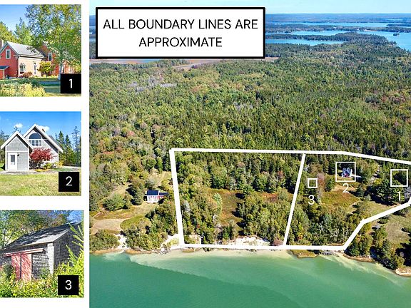 The Captain's House is a magnificent, estate-like property offering a grand, historic cape home plus a stunning guest cottage all poised on 13 acres of beautiful land leading to 540 ft. of gorgeous, sunset facing shoreline on Narraguagus Bay. The surprisingly spacious 4bed/3bath cape was originally built in 1764, by Captain Joseph Wallace, making it the first home in the area. Yet, it's been carefully retrofitted for comfortable, modern, year-round living. The home exudes warmth, history, and craftsmanship throughout with distinctive architectural touches including centuries-old wide plank flooring and the front hall's classic-curved wall design. With delightful historic charm, the main floor features a bright/cozy living room, large kitchen area (built-in dining space), welcoming front hall, large bedroom, and 2 full baths. Upstairs you'll find a lovely, second living room with soaring, vaulted ceilings, 3 additional bedrooms, and 1 full bath. The stunning, bright, and open-plan guest apartment is perched above the heated garage (with storage and built-in workspace). The apartment features a huge living area, vaulted ceilings, full bathroom, and kitchenette. Its private position would make it an ideal vacation rental. Fields of wildflowers and groomed paths lead to the barn and down to the elevated shore where you'll find breathtaking views- perfect for a gazebo or launching your kayak. The abutting land of 7acres/330feet of shoreline is also available and can be combined with this listing. This fantastic property, sold completely turnkey (all furnishings etc), is located on a quiet, wooded peninsula, just 5 minutes from the full-service, oceanfront village of Milbridge with its parks, grocery, pharmacy, banks, medical center, small restaurants, and arts center. Just 30 mins. to Schoodic Point in Acadia Nat'l Park / 1 hour to Bar Harbor in the MDI section of Acadia Nat'l Park, Quoddy Head Lighthouse, and Campobello Island Canada / 1.5 hours to Bangor Int'l Airport