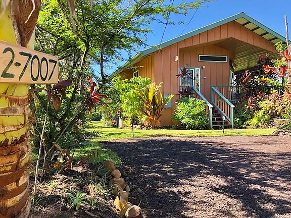 Truly, a Piece of Paradise! Tucked into a quiet back corner of the seaside community of Kalapana Seaview this turnkey licensed vacation rental (STRV) has so much to offer. A charming one bedroom, one bath, open floor plan home with wonderful lanais is surrounded by a variety of flowering and fragrant plants, lush lawn, fruit trees, native Ohia trees, and more. Two adjoining parcels, one park-like, and the other raw land are for sale along with the home (see MLS 703264 & 703263, sold separately ). This is a rare opportunity to have just under 30,000 sqft of land with options to keep it as is for privacy or build permitted homes on the additional parcels.