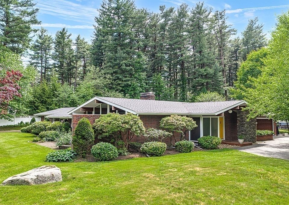 Discover the pinnacle of luxury living in this custom, award-winning mid-century style home in Lynnfield. Spanning a spacious 4,200 sq. ft., this opulent home boasts 4 inviting bedrooms and 3 full bathrooms. Its renowned architectural design is highlighted by the natural light streaming through the skylights and all-glass sliders that allow you to enjoy the view of your heated inground pool and a beautiful professional landscape oasis from many angles of the home. Step inside to find the heart of the home: an eat-in kitchen with soaring cathedral ceilings, featuring quartz countertops, custom walnut cabinets, and a 13-foot center island. Preparing gourmet meals is a delight with top-of-the-line stainless steel Thermador appliances while enjoying your favorite tunes with the surround sound throughout. A finished basement can transform into a playspace, gym area or family plus it has an additional bedroom and private office space. You'll want to make this unique gem your own!