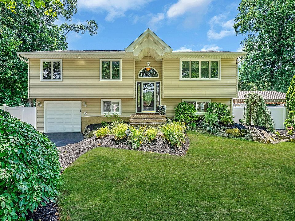 Welcome to 12 Alice Lane, perfectly tucked away on a peaceful dead-end street in the heart of Commack. This beautiful 4-bedroom, 2-bathroom Hi-Ranch offers the ideal setting for everyday comfort and unforgettable gatherings. Step into a resort-style backyard oasis featuring an in-ground pool with a tranquil waterfall, full outdoor kitchen with barbecue, sink, refrigerator and island—truly an entertainer’s paradise.