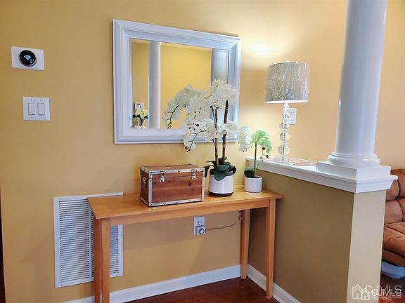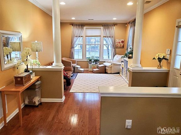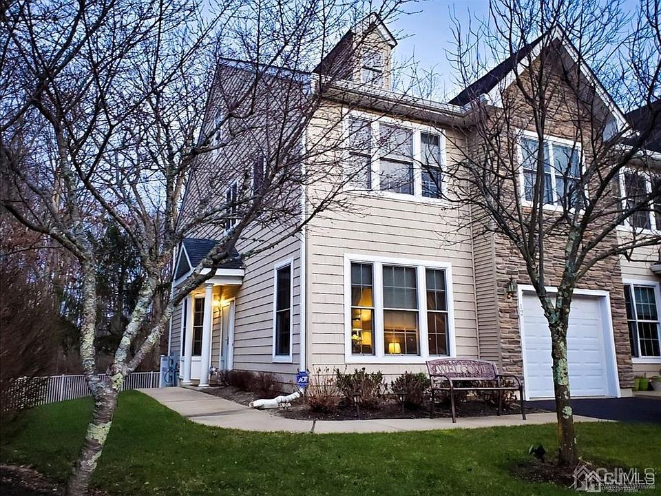 This 3-bed end-unit facing private wooded views is a RARE opportunity! Move-in condition, modern layout and look - just unpack! Lots of windows to let in plenty of daylight. Wood floors in main living areas & hallways. Open first floor w/separate living & dining rooms, 2-story family room, eat-in kitchen w/corian & tile backsplash, w/enjoyable 3-sided gas fireplace for warmth & ambiance. Master Bedroom features elegant tray ceiling, recessed lighting, 2 w/in closets, private balcony. Master Bath w/whirlpool tub, shower stall, double-sinks. Spacious bedrooms. Brand new hot water heater & fridge, HVAC only several yrs. Ample closet space throughout the home. 1-Car garage easy access to bring groceries in. Ultimate functionality, coziness, & modern design. Very close to Rt.9 buses & adjacent community pool & facilities.