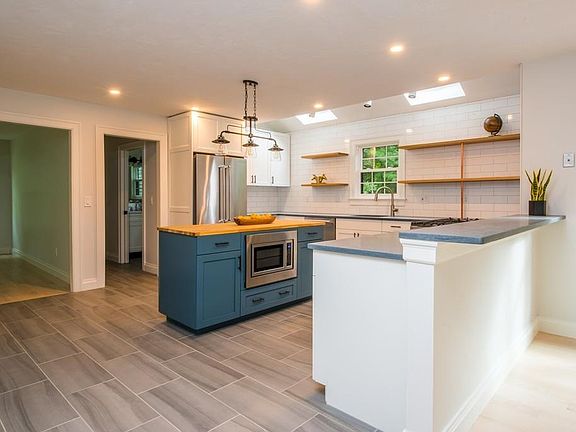 - Kit Dscrp: Countertops - Stone/Granite/Solid, Skylight, Ceiling - Cathedral, Flooring - Stone/Ceramic Tile, Breakfast Bar / Nook, Kitchen Island