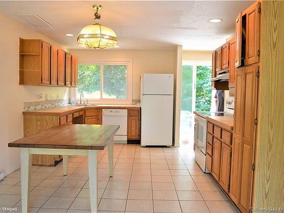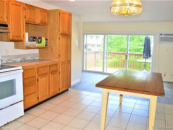 Great location. Minutes to UConn and I-84. Remolded family room, bedrooms and lower level with new floors and painted. This End Unit offers 2-bedroom, 2 full baths. Wonderful Kitchen layouts with ample counter and cabinet space, sunny bright family room with sliders to a large deck. Upper level has two large bedrooms and full bathroom. Lower level has fully finished walk out basement which makes a great recreation room / office / possible bedroom etc, it also offers 2nd bathroom, washer and dryer. Walk distance to pool house, playground and basketball courts. Unit is ready for immediate occupancy. Two Month security deposit and good credit.