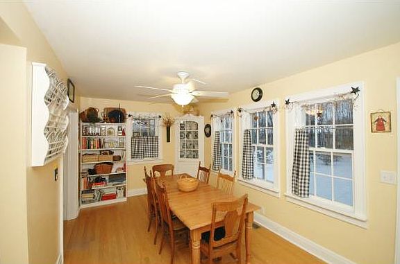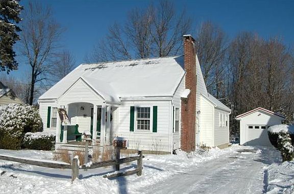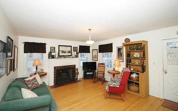 This post war 1945 home is a hidden treasure in a lovely village setting. Oak hardwood floors, original trim and doors with glass doorknobs, vintage light fixtures create a charming home. A renovation in 2011 added a country dining room which adjoins the kitchen; walls of windows fill the room with light. The original dining room is now a library. The focal point of the living room is the fireplace with a wide mantel flanked by windows; a front window adds even more sunshine. Two bedrooms and a full bath are also located on the first floor. The second floor family room was finished in 2011 and runs the width of the house with rustic, natural pine walls, ceiling and flooring. Wall and ceiling insulation has been added, the heating system is converted to natural gas, and the electric panel is new. Back deck, fenced yard, and perennial gardens create a perfect setting! Walk to village shops, the library, the park and pool when summer arrives. It won't be long!