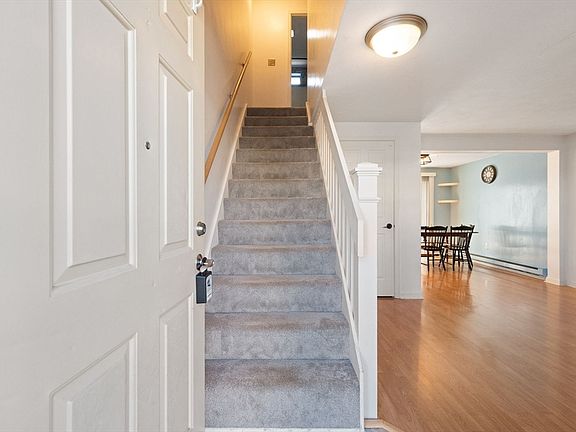 Welcome home to North Attleboro Heights Condominiums. This townhouse style unit features 2 bedrooms and 1 1/2 bathrooms. Upon entering the front door, you will find the open floor plan with living room, dining area, and kitchen, with easy to maintain vinyl flooring throughout. The kitchen offers plenty of cabinet space, with an additional pantry style cabinet built in. Off the dining area is a slider to your private patio space, along with yard space and the added benefit of this unit's outdoor space facing the tree line. Off the kitchen is a walkthrough laundry room leading to the 1/2 bathroom. Upstairs you will find the 2 bedrooms, along with the full bathroom. Low condo fees and only 1 utility bill for lights and heating from the notoriously fair priced North Attleboro Electric keep this unit affordable while having the bonus of being close to all downtown North Attleboro has to offer, along with easy highway access for commuting. Unit comes w/ 2 assigned parking spots.