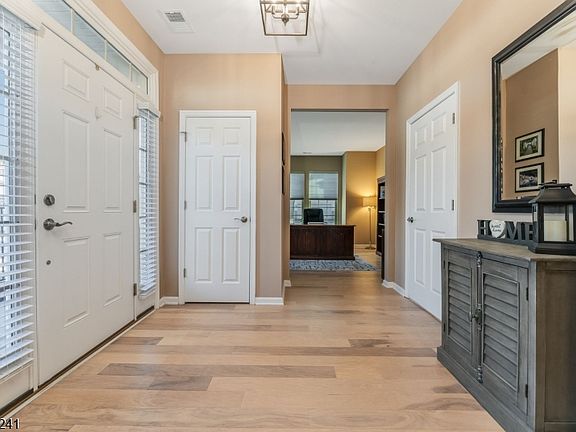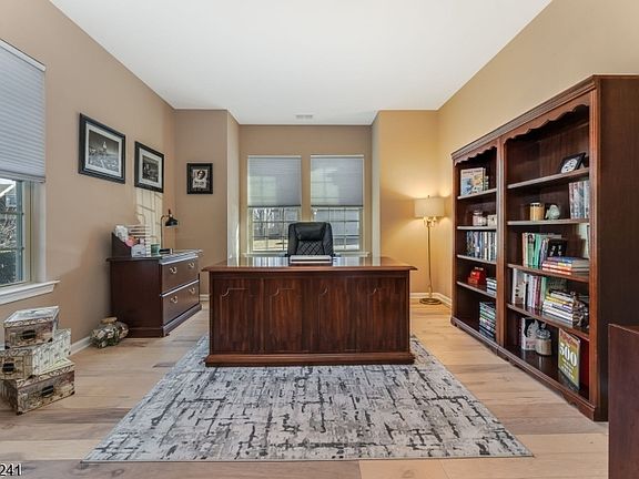 Live your best life in the active 55+ community of Hunterdon Creekside. This Florence model w loft & sunroom addition is an end unit townhouse set on a premium lot, offering highly desirable one-floor living w the primary suite on the main level. 2039 SF of living space, over $60k in builder upgrades, the home showcases an inviting earth-tone palette & wide-plank flooring throughout the open-concept design. Windows on 3 sides & abundant recessed lighting create a bright, airy atmosphere. The gourmet kitchen features soft-close cabinetry, under-cabinet lighting, quartz countertops, tile backsplash, quality stainless steel app & a custom pantry. Pendant lighting highlights the oversized island w breakfast seating, double sinks w disposal. The cafe provides an elegant space for formal dining. The open layout flows seamlessly into the gathering room, where a gas fireplace adds warmth & ambiance, while the sunroom extends the living space w a slider to the fenced paver patio. At the front of the home, the flex room offers versatility as a home office. The primary suite features a deep box ceiling, premium carpet, & WI closet w custom built-ins. The ensuite bath is appointed w comfort-height double vanity w granite top, oversized tiled shower w bench. Completing the main level; a 1/2 bath & a fully equipped laundry room w W/D & utility sink w closet for storage. Upstairs features a loft, 2nd bedroom, full bath & storage room which can easily be completed w flooring to a 3rd bdrm.