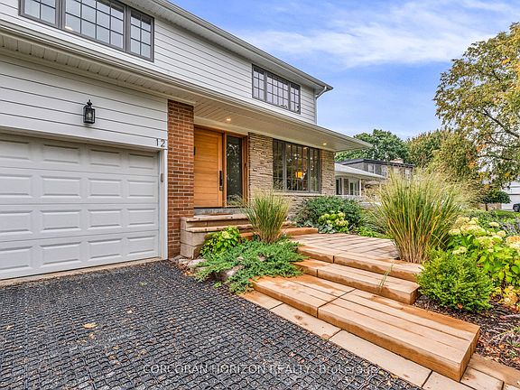 Redesigned from the ground up in 2019 in collaboration with an architect, 12 Barvale Court unites Scandinavian warmth with Japanese purity of line. Conceived around light, proportion, and tranquillity, every detail, from bespoke millwork and European white oak floors to the sculptural stair profile, reflects thoughtful artistry and enduring craftsmanship. Balancing design integrity with everyday comfort, the residence is anchored by flowing interiors and a dramatic family space (currently a photography studio) that opens seamlessly to the professionally landscaped, low-maintenance garden, two decks and a firepit. The main floor is both functional and serene, enhanced by radiant-heated kitchen and studio floors, while custom Victoria Strong doors and Japanese-inspired details elevate the tactile experience. Practical innovation complements the beauty. Stainless steel Bertazzoni fridge & stove, panelled Miele dishwasher, built-in Smeg microwave, and a central vacuum system add convenience. Upstairs, the home continues its refined aesthetic with natural textures and understated elegance. The functional open concept office can easily be restored to a third bedroom. The finished basement has an extra bedroom, den and brick fireplace. An Ecoraster permeable driveway underscores the home's environmental awareness. Set on a quiet, tree-lined cul-de-sac in Etobicoke's sought-after Eringate community, the property is close to lush green spaces, Centennial Park and golf courses, top-rated schools, and offers easy access to major highways. Here, architecture and lifestyle are in perfect harmony, a distinctive address for those who value design, proportion, and refined living.