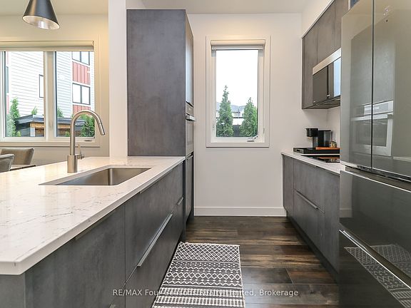 Stop looking and start living your four-season dream! Welcome to this stunning corner-unit condo in the sought-after Mountain House community, the perfect blend of investment and personal getaway. Rented annually for the ski season and the option to rent for 30+ day stays year round in line with municipal bylaws, this spacious 3-bedroom, 2.5-bath unit offers excellent income potential while still allowing you to enjoy it yourself. Inside, you'll love the bright, upgraded kitchen with sleek built-in stainless steel appliances, pot lights, and upgraded laminate flooring throughout. The open-concept living area features a show-stopping floor-to-ceiling stone gas fireplace with a rustic timber mantle and private back yard space, the ideal place to unwind after a day on the trails or slopes. The primary bedroom includes a beautiful ensuite, while the additional bedrooms offer ensuite privileges for ultimate comfort. Convenience is key with in-suite laundry and your own exclusive parking spot (plus guest parking on-site). Mountain House amenities are truly exceptional: spa-inspired hot and warm tubs with waterfalls, an apres-ski lodge with a wood-burning fireplace, full kitchen and lounge areas that is free to rent out for gatherings, sauna with full bathroom amenities, fitness studio, and a heated patio. Step outside your door to explore scenic walking trails leading right to Blue Mountain Village just a 15-minute stroll away. Whether you're looking to invest, relax, or both, this condo offers it all. Don't miss your chance to live your best life in every season *Ask for financials from similar unit. Unit is empty and vacant ready for you to design it to your style!