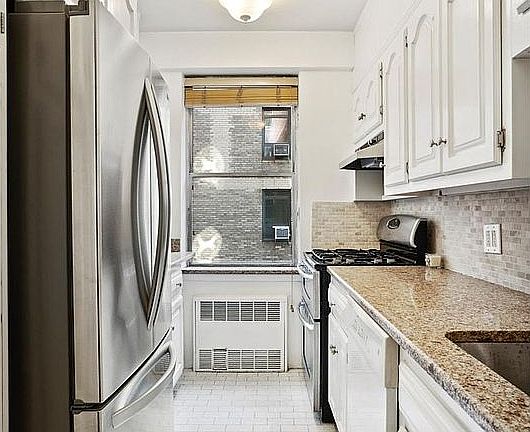 Tranquility on Beekman Place. This oversized 1 bedroom/1 bathroom home in the elegant and understated 12 Beekman Place checks every box. The large living room has space for multiple sitting areas and is flanked by a wall of windows that run the entire length of the room. The separate dining area has ample room for a large dining table perfect for entertaining. The well-appointed, windowed kitchen has stainless-steel appliances, quartz countertops, and wonderful storage. The large primary bedroom has room for a king-sized bed, along with two large closets.