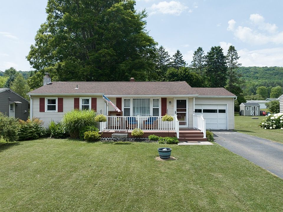 Immaculate 2 bed, 1 bath ranch on a quiet, charming street, just minutes from everything! This updated, stylish home features hardwood floors, a modern kitchen and bath, and central air. Enjoy summer nights on the front deck or the covered back patio overlooking the spacious yard. The lower level offers a large family room and tons of storage. Located in Chenango Forks School District. A must see!