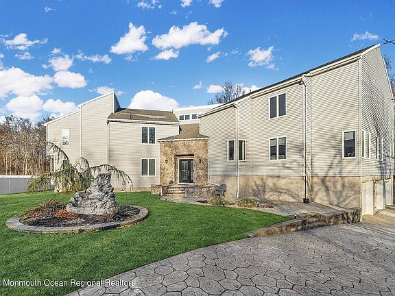 ''Magnificent Custom Contemporary Estate'' Encompassing over 4,300 sq ft of living space and situated atop more than half an acre this sprawling home is like no other. Enter the impressive foyer featuring soaring ceilings that continue into the formal living room, accented with transom windows, skylights and a two story (2) woodburning fireplace; truly the centerpiece of this home. Continue to the kitchen; a dream with ample white cabinetry, stone counters, a huge island and large breakfast room. Sliding doors open to the expansive deck. From there the formal dining room functions like a great room with room for all to gather. Upstairs the owner's suite features two closets, a large remodeled bath and a grand whirlpool tub overlooking the back yard. Down the hall. three more bedrooms; one a suite, with it's own private balcony, and two full baths, complete the second level. In a wing of its own two more bedrooms, a full bath and a large den are ideal for multi-generational or mother-daughter living. There's room for a home gym, private office or whatever you can dream. In addition there is a large three car garage and for outdoor entertaining the elaborate deck, comprised of Trex and composite planks is plenty spacious for all your guests!