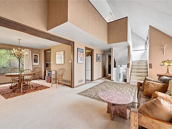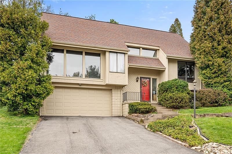 RARE OPPORTUNITY. A wall of windows in the huge open living room of this contemporary single-family home in Shaler Township has a vaulted ceiling and offers a view of downtown Pittsburgh. Open dining room and eat-in kitchen. Patio for outdoor dining is steps away from the kitchen and a comfortable family room with fireplace. Additional private flex space on main floor for office, 4 th bedroom or den. A gallery overlooking the living room opens to 3 bedrooms each with large windows allowing sunlight to stream through. 2 and a half bathrooms. Large finished basement and 2-car integral garage. Nearby playground and basketball court. Convenient commute to universities, medical centers, museums, cultural district, Bakery Square and downtown + shopping and dining in Shadyside, Lawrenceville, Fox Chapel and Squirrel Hill. Make this light and bright house your new home! Must see.