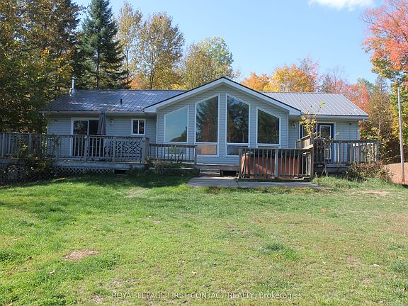 Looking for an affordable home or cottage on beautiful Bay Lake?!.....then this could be yours! Needs TLC! Only 10 minutes from Bancroft and all the amenities you need! A nice sized home on a good size lot!....with an oversized single car garage! Open concept kitchen/dining and large living room with picturesque windows overlooking the lake! Three Bedrooms.....Primary with it's own 3 piece bath, 2 other nice sized bedrooms plus an additional bathroom....and a main floor laundry room. Crawl space under the whole home gives you lots of storage! Sauna and additional shed are also included! Look forward to sitting on your deck or dock enjoying the lake views!