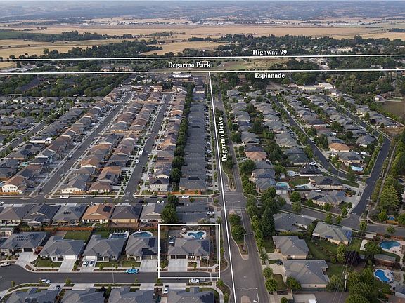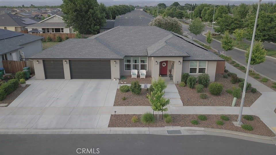 Welcome to your almost brand new home located on a quiet cul-de-sac on the north side of Chico in Hartley Park. This home is located on a large corner lot one block from the new Hartley park. This home features 3 bedrooms and 2.25 bathrooms and a desirable split floor plan, providing privacy and convenience. As you enter, you'll have the office or option den. The large kitchen is simply amazing with a large island and granite counter tops and stainless steel appliances. Adjacent to the kitchen, you'll find a comfortable dining area where you can enjoy meals with family and friends. The open floor plan design allows for easy access to the kitchen, dining area, and living space and steps away from your inground pool. Off the kitchen for Privacy is the Large primary suite with a walk-in closet that offers plenty of storage space for your wardrobe and belongings. The en-suite bathroom features dual sinks, adding convenience and functionality. One of the highlights of this property is the backyard, designed with low maintenance in mind all on drip system. Solar and low PGE bills are just the tip of the iceberg.