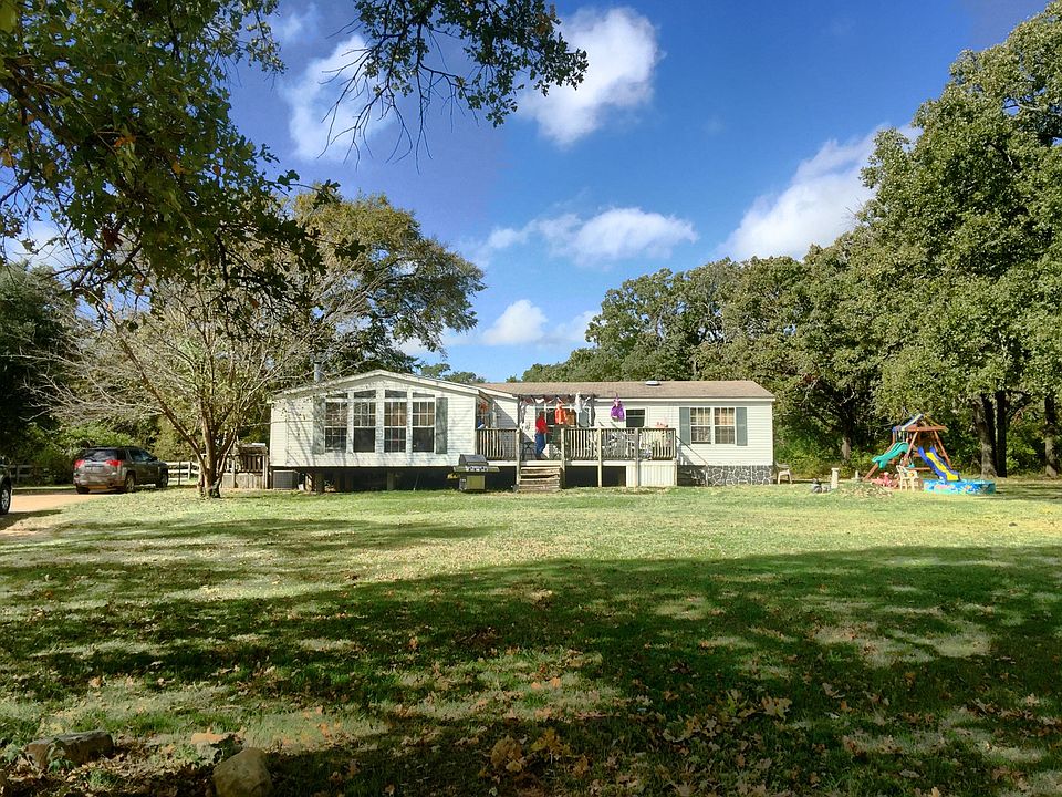 Secluded and private 30 wooded acres with 2 ponds off Portland Rd with 2 homes. This land would make a lovely building spot for a custom built home. Portland is a paved road and takes you to a private gravel drive that winds to the center of the property to an open clearing surrounded by trees. Priced with triplewide mobile home and old farmhouse. The 1997 mobile home offers 2160 square feet with 4 bedrooms, 2 bathrooms and 2 living areas. This property has 2 homes that share a water well. As an added bonus, there is 2 bedroom/ 1 bath farmhouse with hardwood floors that is ideal for restoration. Would make a good weekend retreat or cabin for guests when they visit. This place offers an abundance of wildlife. It is so peaceful and quiet here that you will love having coffee and watching deer from the front porch. Call Christy today to arrange a private showing. Located in the Dickson School District. Easy access to Hwy 199 and just minutes to downtown Ardmore, OK.