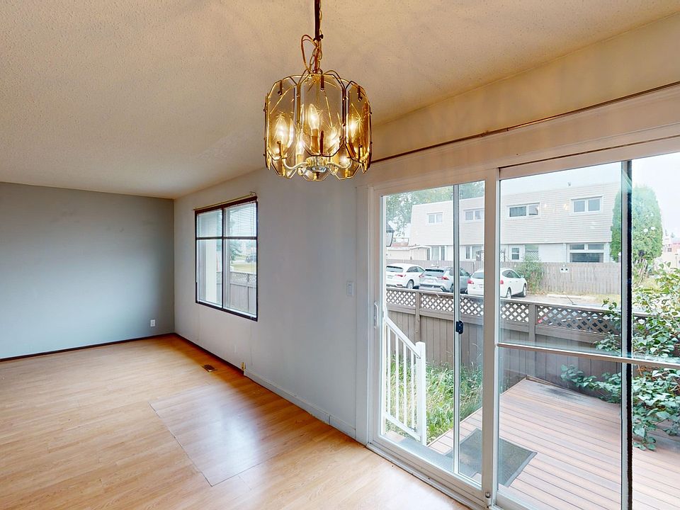 The main floor has newer vinyl plank flooring throughout, a large living area and good sized dining room with glass sliding doors out to your own private low composite deck. Galley style kitchen with ample cupboard space and bath.