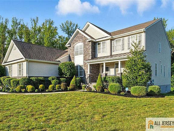 Located within the highly acclaimed South Brunswick Blue Ribbon School District, this exquisite residence offers approx 6880 square feet of finished living space and combines timeless elegance with thoughtful family living. Designed by a nationally renowned architect and set in a private cul-de-sac within a 72-home community, the home showcases superior craftsmanship and attention to detail throughout. The main level welcomes you with a dramatic two-story foyer highlighted by a striking chandelier and balcony overlook. A formal living room and elegant dining room with tray ceiling create a gracious setting for entertaining, complemented by a butler's pantry and ample pantry. The gourmet kitchen is the heart of the home, featuring an oversized island with seating, adjoining breakfast area, and a sun-filled sunroom with ceiling fan and walls of windows overlooking the serene backyard. A flex room off the dining area offers versatility for family organization, study, or quiet retreat. The main floor also includes a private study with glass doors, a powder room, and a magnificent two-story family room filled with natural and recessed lighting. For multigenerational living, the spacious in-law suite provides a sitting room, spa-style bath with bench, and generous walk-in closet. Upstairs, the owner's suite is a true sanctuary with tray ceiling, two expansive walk-in closets, and a luxurious bath featuring a soaking tub, enclosed toilet, dual vanities thoughtfully placed on opposite sides, linen storage, and a two-person tiled shower. The second floor also offers two bedrooms with large closets joined by a Jack and Jill bath with dual sinks, as well as a Princess suite with private full bath. A wide hallway with two linen closets ensures convenience and ample storage. The fully finished lower level is designed for both recreation and relaxation. An expansive open space with a full wet bar creates the perfect setting for gatherings, while a dedicated home theater with candy bar, additional bedroom, and flexible recreation areas complete this exceptional level. Outside, the property presents nearly half an acre of wooded privacy with a professionally maintained irrigation system. A three-car oversized garage enhances everyday living, while the community offers sidewalks, school bus access, and proximity to major highways, shopping, houses of worship, award-winning hospitals, and leading corporate centers.