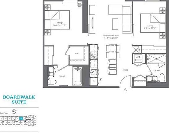 Welcome to "Monde" Condo! Discover a Tranquil Waterfront Lifestyle in this Modern 2-bedroom, 2-bathroom Suite. The Bright and Open-concept Layout in the Kitchen, with a Stylish Quartz Center Island and Smooth 9-ft ceilings. Whole Suite Freshly Painted. Convenient in-suite laundry with 1 Underground Parking, and 1 Locker. Building features world-class amenities include: Outdoor Infinity Pool, Rooftop Terrace with BBQ area, Fully equipped gym, Visitor Parking, Yoga studio and More! A Spacious Party Room and a Theatre room are also available. Steps to the Waterfront Scenic Walking paths, Grocery stores, Restaurants, St. Lawrence Market. The DVP, Gardiner, and TTC stops just minutes away, and George Brown College Waterfront Campus right around the corner. This is the perfect Blend of Serenity and Urban convenience. Don't Miss This Opportunity!