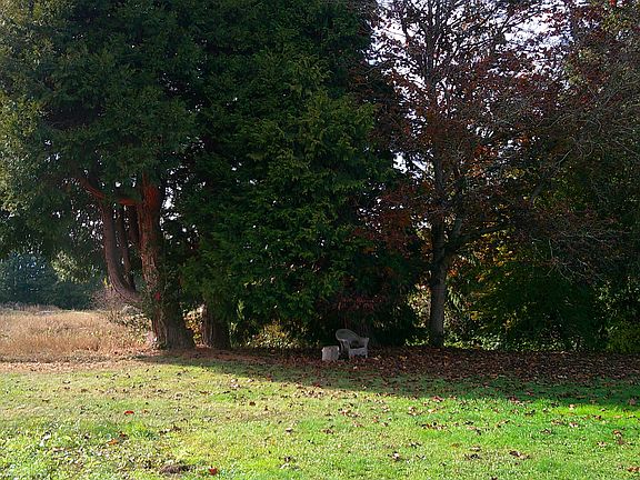Secluded, two bedroom house with a spacious living room, wood stove and mountain view. Surrounded by and orchard and various types of big trees on 5 acres. There's a carport and two bays in the garage available to tenants. Mowing is provided as well.