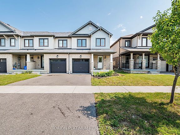 Welcome to family-friendly living in the heart of Stoney Creek! This bright and spacious 2-storey end-unit townhome that feels like a semi offers 3 plus 2 bedrooms, 3.5 bathrooms, and extra windows that fill the space with natural light and a rare fully finished basement complete with a rough-in for a kitchen, two bedrooms and a full bath that is ideal for multi generational families or guests. The open-concept main floor boasts hardwood flooring, upgraded kitchen cabinetry, stainless steel appliances, a breakfast bar with double sink, modern fireplace with floor-to-ceiling marble surround, pot lights, main floor laundry, and inside access to the garage. Upstairs, the spacious primary suite offers a walk-in closet and spa-like 4-piece ensuite with a glass shower and soaker tub, along with two additional generous bedrooms and another modern 4-piece bath. Freshly painted throughout, with no carpet, an upgraded oak staircase, and a fully fenced backyard. Conveniently located near schools, parks, trails, conservation areas, playgrounds, shopping, the QEW, the LINC, and the newly opened Confederation GO Station - this is truly a home where your family can grow, gather, and create lasting memories!