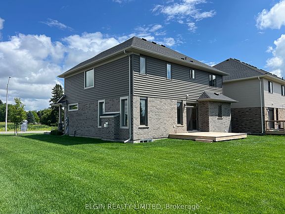 Move-in ready and beautifully appointed, this stunning 5-bedroom (4+1), 3.5-bathroom two-storey home built by Hayhoe Homes is located in the charming Town of Tillsonburg. The open-concept main floor features a welcoming foyer with office and powder room, 9' ceilings, hardwood and ceramic tile flooring (as per plan), and a designer kitchen with island, walk-in pantry, quartz countertops, and backsplash seamlessly flowing into the dining area and great room with a cozy gas fireplace, plus convenient main floor laundry. Upstairs, the luxurious primary suite impresses with a walk-in closet and spa-like ensuite offering double sinks, a soaker tub, and a custom tiled shower, complemented by three additional bedrooms and a full main bathroom. The finished basement adds versatile living space with a large family room, fifth bedroom, and bathroom. Other features include a double car garage, covered front porch, rear deck with BBQ gas line, lawn sprinkler system, front yard landscaping, double concrete driveway, Tarion New Home Warranty, and numerous upgrades throughout. Situated in the Northcrest Estates community, close to shopping, restaurants, schools, parks and trails, with easy access to Hwy 401.