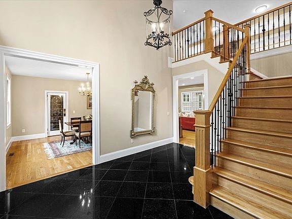With a flexible layout that supports multigenerational living, this gorgeous custom-built colonial has ample space and is situated on 3+ private acres. From the moment you step into the grand two-story foyer adorned w/ granite flooring, you’ll be captivated by the attention to detail & luxurious features throughout, incl 9ft+ ceilings & gleaming hardwoods. Spacious fam rm is a true showpiece w/ stunning floor-to-ceiling stone fireplace & interior balcony. The expansive gourmet kitchen boasts a huge island w/ vegetable sink, abundant counter space, cabinetry & gas cooktop. An inviting eat-in area is bathed in natural light w/numerous windows. 1st floor, open concept guest suite w/ full bath & exterior access. Upstairs, spacious primary suite w/ lg walk-in closet & spa-like bath w/ jetted tub & tiled shower w/glass door. 3 addt'l good-sized bedrooms, 2 full baths & convenient 2nd flr laundry. Finished walkout lower level has food prep area and full bath. Quick jaunt to downtown.
