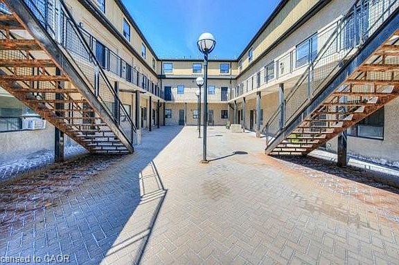 Welcome to the Bridgeport Lofts! This site was developed in 2002 utilizing industrial era (1900's) building shell with an uber cool factor and loft feel. Bare naked brick, and high ceilings characterize this spacious suite. Updated vinyl plank throughout. Oversized windows contributing to a Day Light basement feel. Two bathrooms. Note controlled entry from the exterior. Interior access through the lower concourse to bike room, games room and on-site laundry - providing great convenience for the residents. Condo fees of $520 per month include exterior maintenance, snow removal, water, garbage removal and a parking spot. Walk Score of 97 - Walkers' Paradise. Close to all amenities that make Waterloo great - including two LRT stops, Uptown and its shopping/night life scene, library, Waterloo Park as well as walking distance to both universities. Two tenants currently paying $750 each inclusive with leases to end of August, 2025. Compelling opportunity for investor seeking income property, parent with kid going to school or buyer with a large family on a budget.