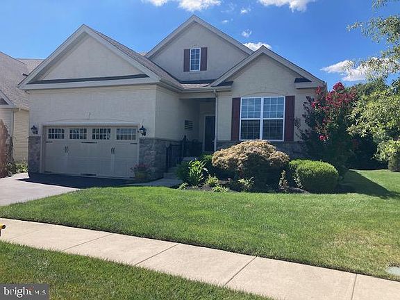 Fantastic Opportunity in Wildflowers at Medford – An Active Adult 55+ Community! Welcome to this expansive Tarrington IV model, offering all the comforts and conveniences you’ve been looking for in active adult living. With a low monthly HOA of just $140 and beautifully maintained grounds throughout, pride of ownership truly shines in this community. Step inside to a welcoming foyer, where a private study/ first floor bedroom sits to your right. The home then opens up into a spacious, open-concept kitchen and living area featuring granite counters, generous dining space, and a cozy gas fireplace. High ceilings enhance the sense of openness, making the living space feel bright and inviting. The first floor hosts two full bathrooms, including a primary suite with its own private bath, as well as generously sized rooms designed with comfort in mind. Upstairs, you’ll find a third bedroom, perfect for guests or a flexible space. The partially finished basement offers endless possibilities—whether you envision a craft room, home gym, or hobby space—and still leaves abundant storage with high ceilings. Additional storage can be found in the attached double-car garage. Best of all, this home backs to a serene wooded area, providing a peaceful backdrop to enjoy birdwatching or the changing seasons from the comfort of your home. Close to shopping ,houses of worship and all the conveniences this wonderful area has to offer. Don’t miss the chance to make this beautiful property in Wildflowers at Medford your next home! Offered at $629,000