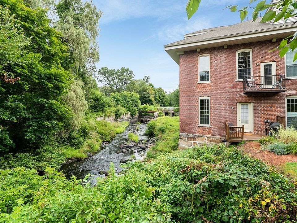 Immerse yourself in the historic charm of Brookside Mill. A unique blend of old and new, seamlessly joining old-world craftsmanship with modern amenities. This light and bright corner unit if filled with charm and character, with expansive windows, soaring ceilings, exposed brick and incredible views of Stony Brook. First floor features open concept living, fully appliance kitchen with stainless appliances and large pantry, hardwood floors, dining area and large living room with balcony overlooking Stony Brook. Stairs lead to second floor with two large bedrooms (one bedroom with master bathroom), hall bathroom and laundry area. Other amenities include, new heating system, new A/C, Deeded parking in heated garage, storage unit (in garage) Beautiful grounds with patio overlooking brook, community grills, common room. Well managed, pet friendly (under 35lbs) building, close to Nabnassett Lake Country Club, town beach, shopping, restaurants, and easy access to Rte. 495 and Rte 3