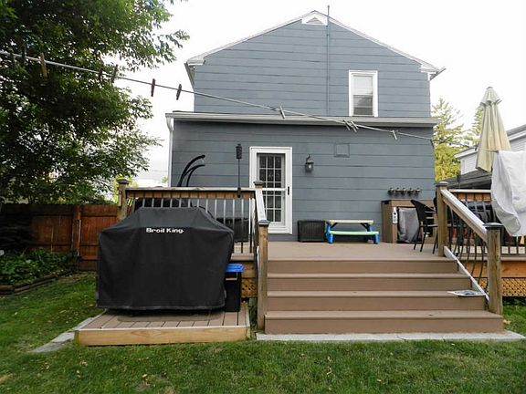 Situated on a quiet one-way street this three bedroom, one and a half bath large home has many new updates inside and out. The exterior boasts fresh paint with new vinyl shutters, a new roof in 2014 with seamless gutter installation and composite/vinyl decking on the front porch and the back deck. Privacy fencing surrounding the backyard provides an ideal space for kids and pets. A one car garage has a carport attached giving you space for an additional vehicle. Inside you will find a unique wooden spiral staircase, a spacious living room and a completely remodeled dining room. A nice working kitchen includes stainless steel appliances. A laundry space, a updated half bath and office space round out the first floor. The large bedrooms are all on the second level along with a full bath. Many upgrades have been made to this home for you and it is tastefully decorated throughout. Close to amenities and very economical to heat as well. This charmer will has so much to offer!