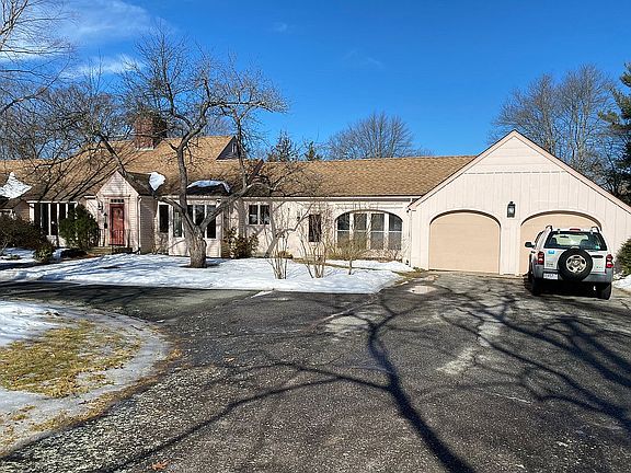 A lovely, spacious home with many windows that give views of the 4.4a parcel, and overlooks a pond and Lincoln town conservation land beyond (Browning Fields). Walking trails accessed directly from property Property is on a private lane that serves three houses - no additional houses may be added. Main bedroom, bath and living spaces on the main floor; two bedroom with bath on second floor. Sunny eat-in nook in kitchen that opens into the formal dining room. Attached garage accessed through breezeway.
