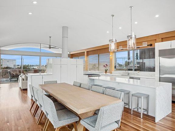 Rental Registration #: RP240565 Be dazzled by the beautiful water views of the ocean and Mecox Bay from this newly renovated Modern Masterpiece in Water Mill South on famed Flying Point Beach. This light filled gem boasts a second story great room with two separate decks, one facing West to enjoy perfect sunsets over the Bay from your lounge chairs and the Eastern deck with outdoor table and chairs to enjoy breakfast as the sun rises from the Ocean. The Gourmet kitchen in an open floor plan concept has room for 7 for countertop dining and a beautiful large entertaining dining table seating an additional 10. Architecturally placed away from the great room is one of the primary suites with beautiful bay views from the King bed and a brand-new renovated marble bath with soaking tub, shower and double sinks. The first floor of this fabulous beach home features 3 large bedrooms including a first floor primary, 2 full baths, 2 lounges with big screen tvs, a wet bar with fridge to service the pool area and full laundry. The heated pool is surrounded by beautiful gardens and has an additional ground level deck area for dining and entertaining. As if this oasis was not already perfect, there are beautiful gardens to relax in, an outdoor shower and just moments outside of the electric driveway gate is access to the ocean at Scott Cameron Beach with lifeguards and The Cut for fun in the Bay or Surf. RP240565