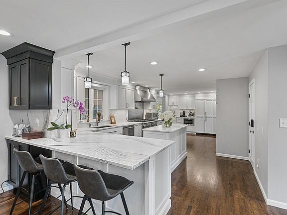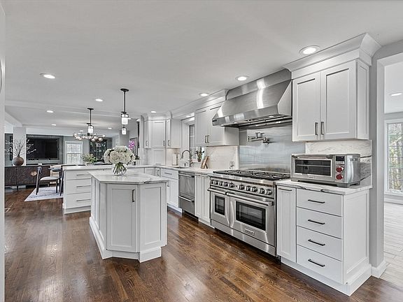 Discover your dream home at 12 Cameron Way, a stunning blend of sophistication, comfort, and resort-style living. This beautifully updated home features exceptional craftsmanship and an outdoor oasis with a heated gunite saltwater pool, waterfall, cabana, & hot tub on a screened-in deck overlooking a private yard. The open-concept main level includes a formal living room, family room with oversized fireplace, and game room. The chef’s kitchen boasts quartz countertops, Sub-Zero & Wolf appliances, and custom cabinetry. Upstairs, the luxurious primary suite features a spa-like bath with fireplace, steam shower, and soaking tub, three additional bedrooms, two baths, laundry, and office. The third level offers a private office/lounge, and the finished basement adds a custom built in mudroom off the oversized 3 car garage, gym, TV room, 3/4 bath, laundry, & walkout access. Extras: generator, central vacuum, sprinkler system. Open House: Sat 11/15, 1:30–3:30 PM & Sun 11/16, 10:30 AM–12:30 PM