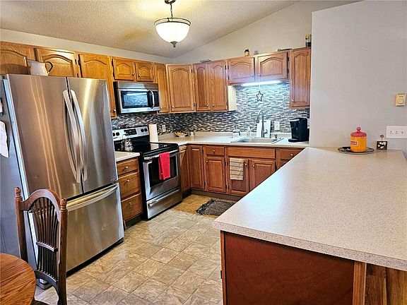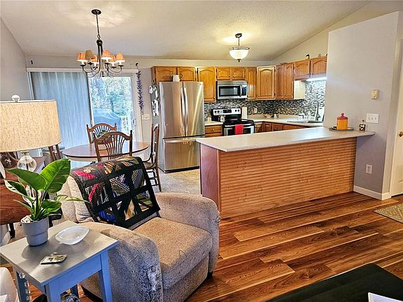 This Raised Ranch style home offers 2 bedrooms and 1 full bath. Open living room to kitchen and dining area with sliders to a very large rear deck. Kitchen has stove, refrigerator, dishwasher and microwave. Kitchen counter tops allow for stools and additional eating area. The lower level is ready for you to finish off in the future. Plumbed for additional bath, bedroom and family room woth sliders leading to the driveway. Also a Laundry area on this lower level. City water, private septic. Electric heat and hot water and shed in the back yard. THIS SALE IS SUBJECT TO SELLER FINDING SUITABLE HOUSING.